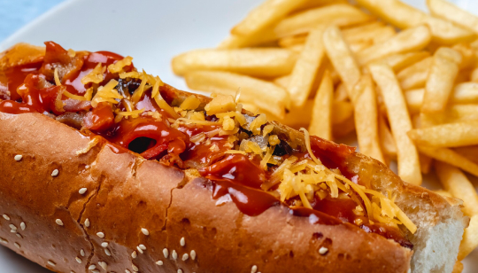 Salchicha, beicon, queso, cebolla