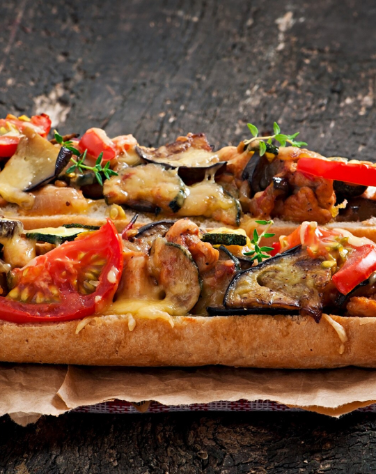 Empanado, lechuga, tomate, queso